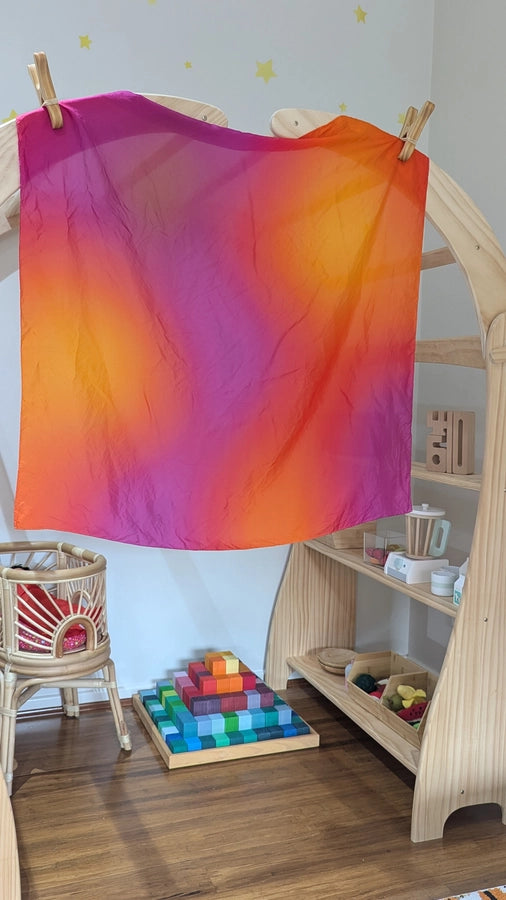 Play Silkies are more than just beautiful cloths — they’re invitations to move, imagine, and connect. Whether they become capes, oceans, cubby walls or dancing streamers, our silkies transform everyday play into something extraordinary.
