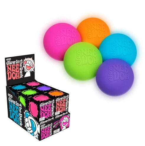 In the dark, this groovy glob gives off a green glow that fills your hands with a squish that will blow your mind and mellow you out. Glow in the Dark NeeDoh is filled with a non-toxic, dough like compound that always returns to its original shape. When the sun goes down, lighten up your mood with Glow in the Dark NeeDoh!