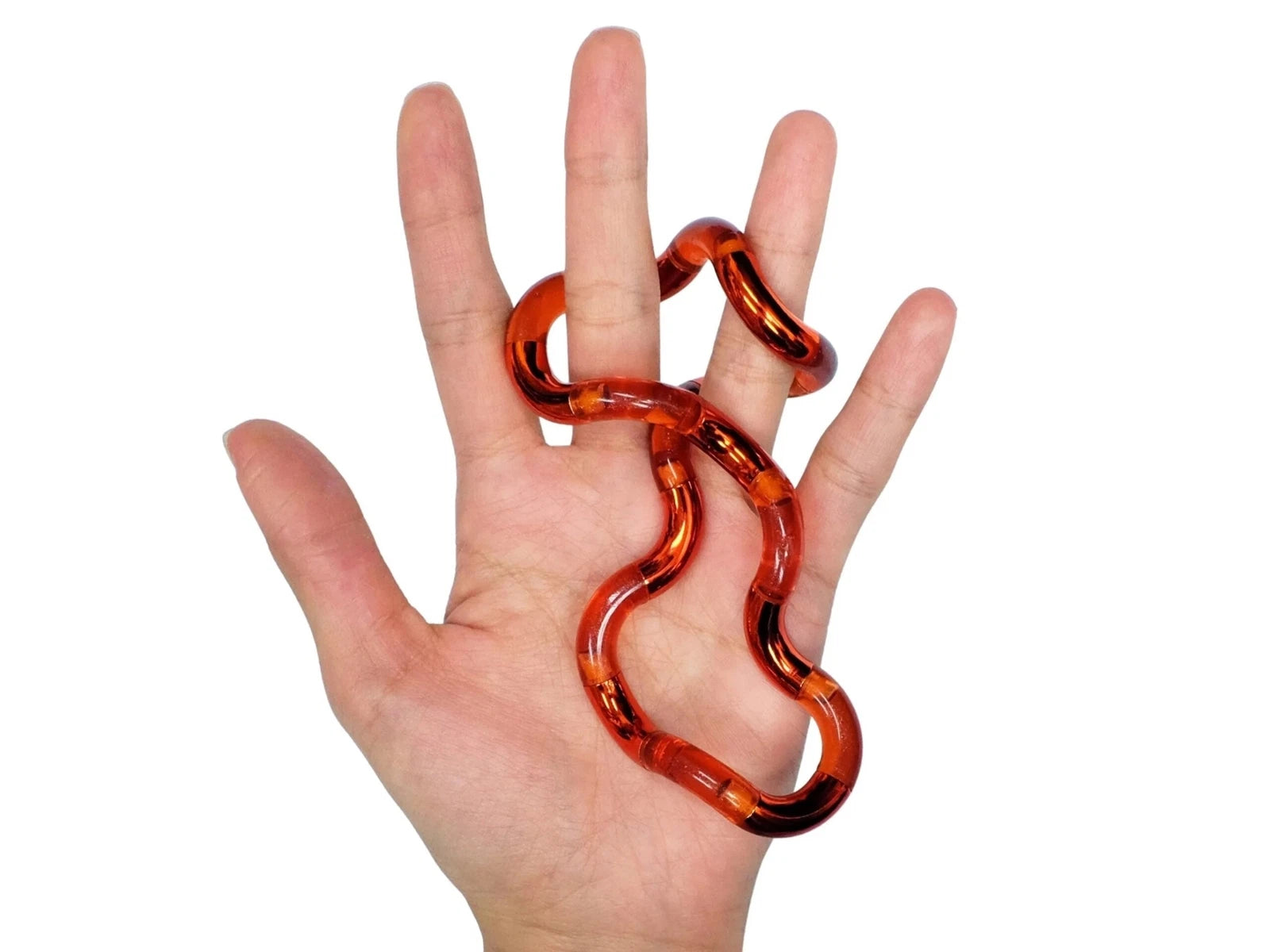 They twist, turn, squiggle and squirm! The Tangle Jr. is bright and colourful and comes in different colour combinations (each sold separately) that are simultaneously fun, unique, and elegant for kids and adults to wear and play with.
