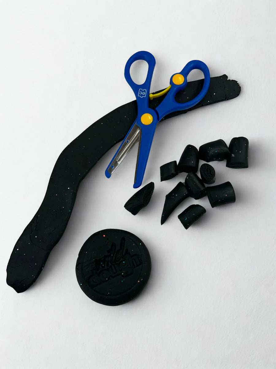 GALAXY BLACK playdough with cola lightly scented and sparkling with a mix of glitter. Generous 280g jar