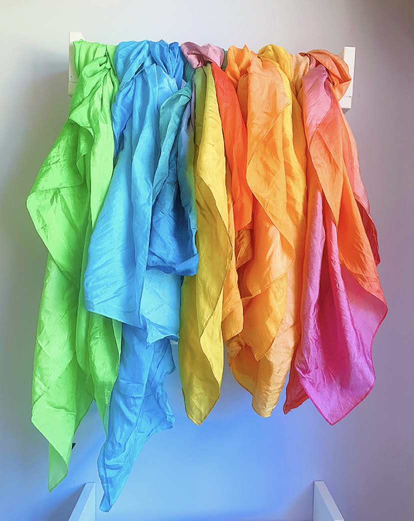 Play Silkies are more than just beautiful cloths — they’re invitations to move, imagine, and connect. Whether they become capes, oceans, cubby walls or dancing streamers, our silkies transform everyday play into something extraordinary.