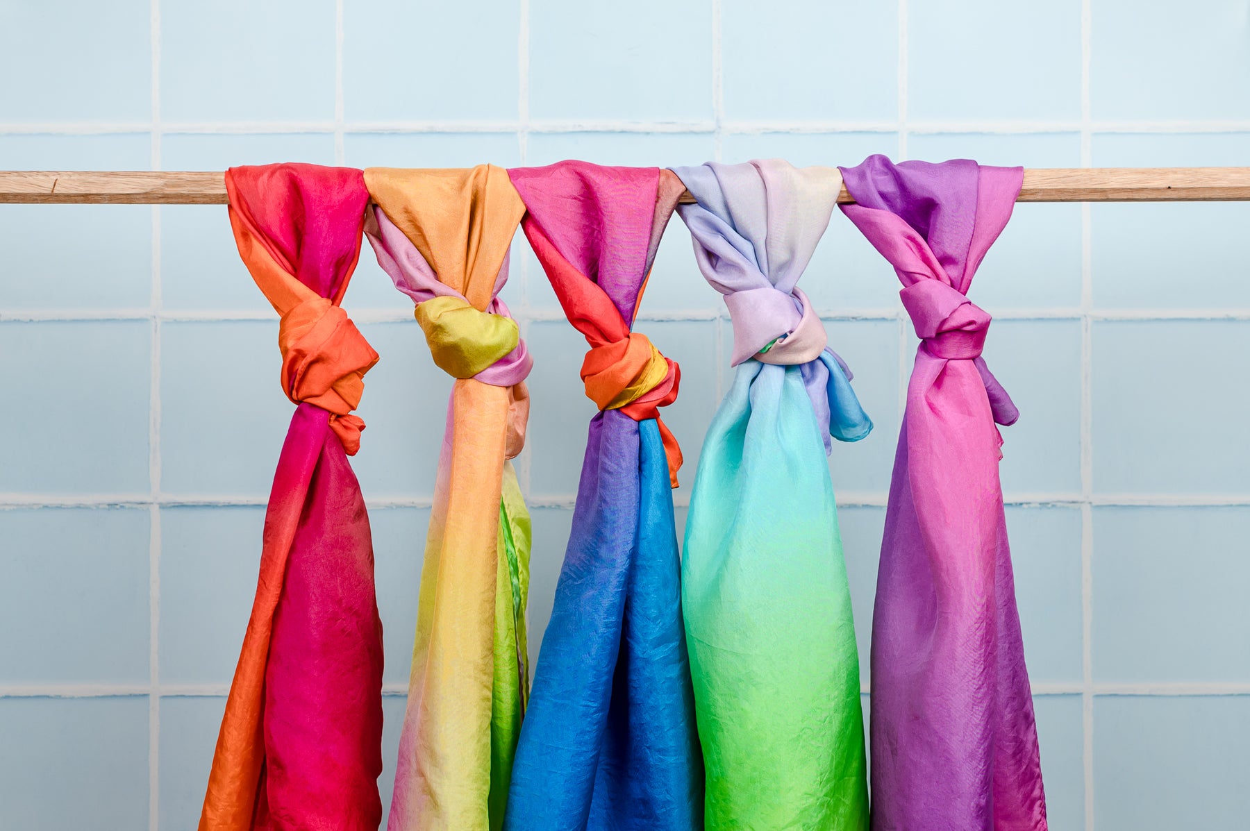 Measuring 90cm x 90cm and crafted from 100% 8mm pure mulberry silk. Play Silkies are silky soft yet durable enough for everyday play and wild imagination.