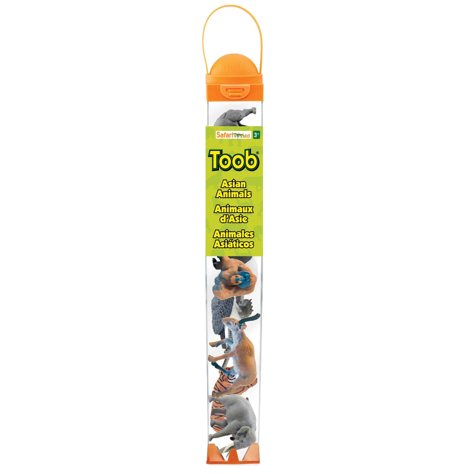 This TOOB includes re-usable packaging with a latching top and carry strap that makes TOOBS portable and convenient! 8 figures are included, with realistic and accurate details, despite their small size. These animals all represent species found in Asia, including the Asian Elephant, Indian Rhino, Orangutan, Panda Bear, Tiger, Saiga Antelope, Philippine Eagle, and Gavial. Each animal features accurate sculpting and painting details, true to the actual animals.