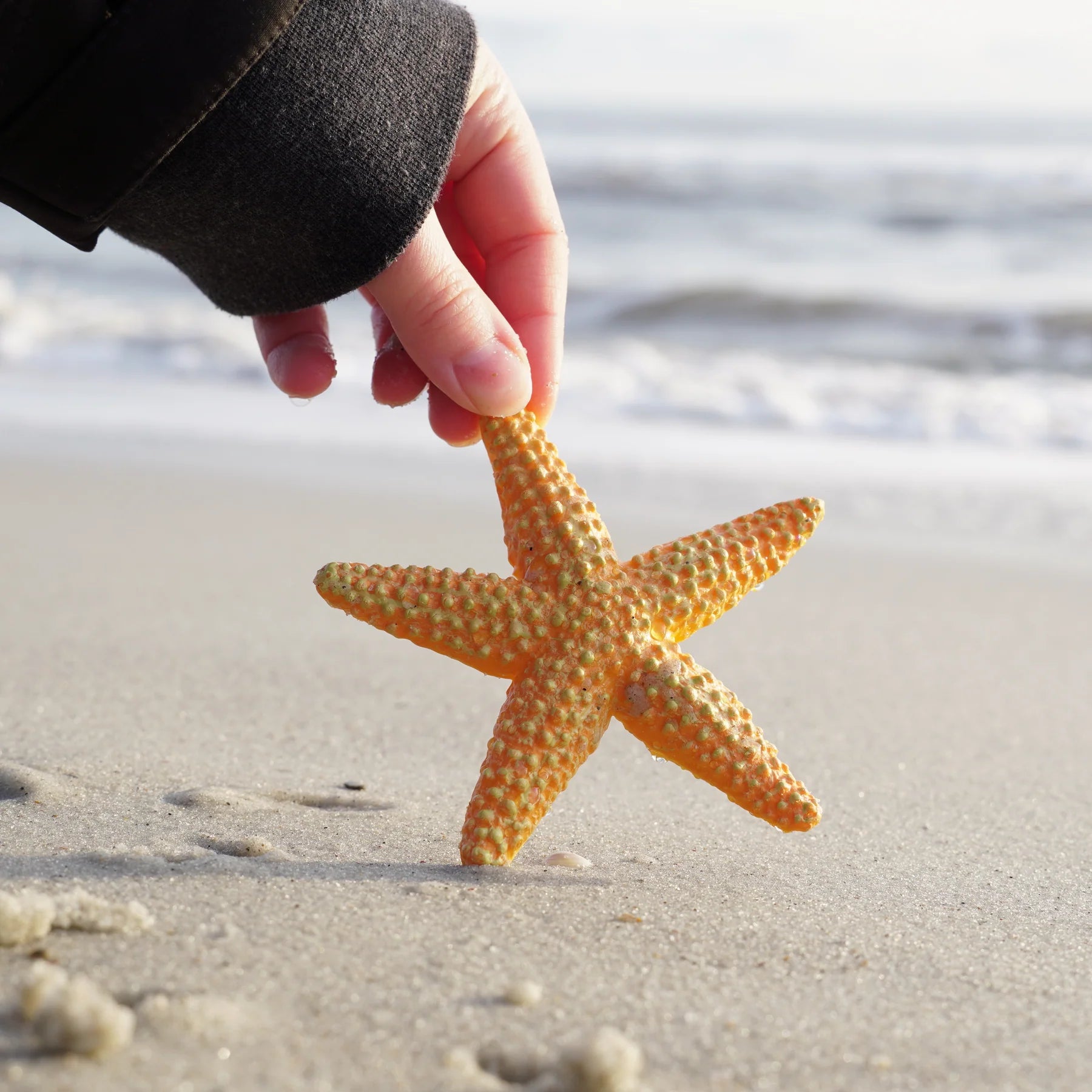 Starfish usually have five arms in the traditional star shape, although there are species that can have as many as 40 arms. Starfish can come in many different colorations, although orange is one of the most prevalent.