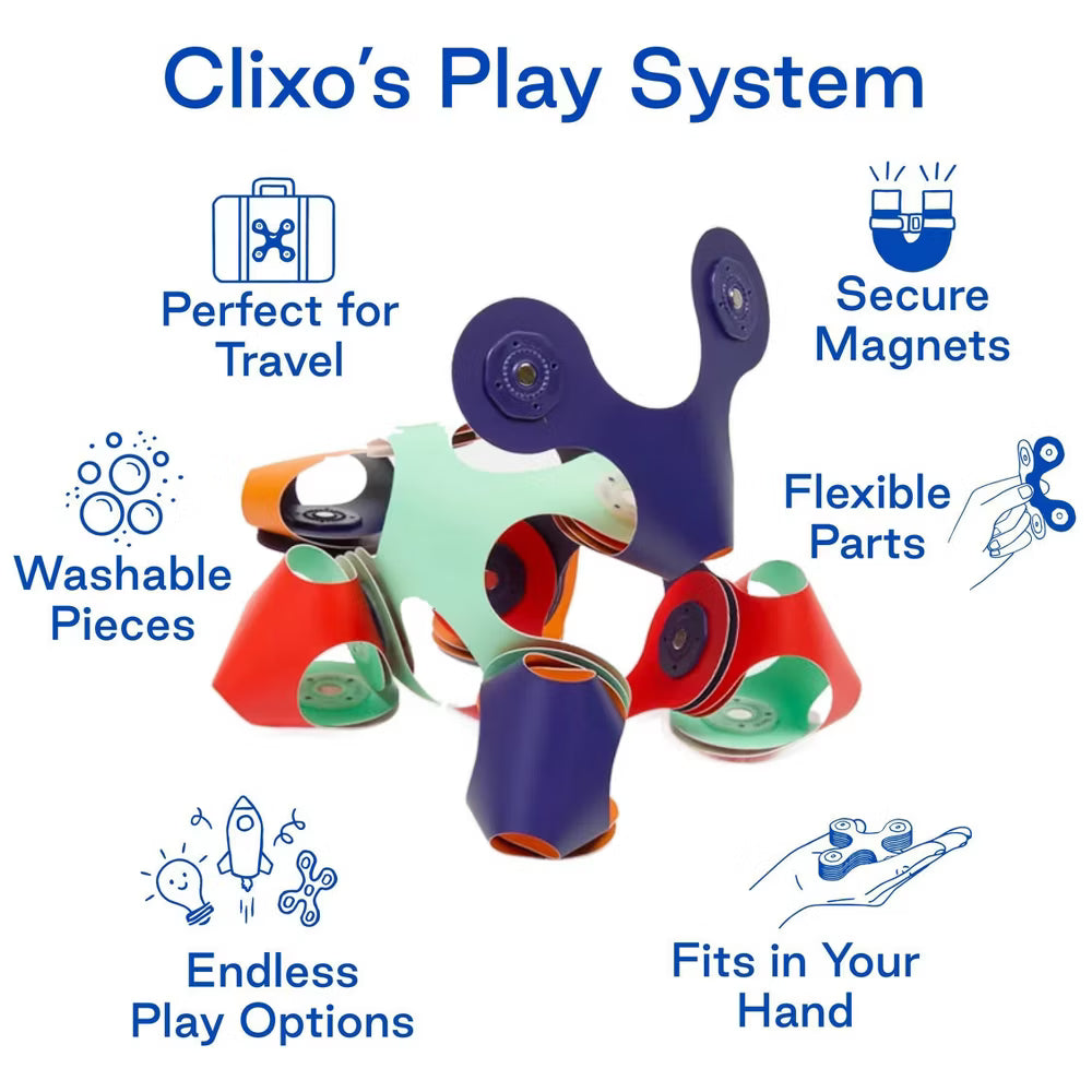 - Clixo pieces are made from recyclable and durable synthetic paper with strong embedded magnets for maximum safety. The materials are proprietry, kid-safe (non-toxic)